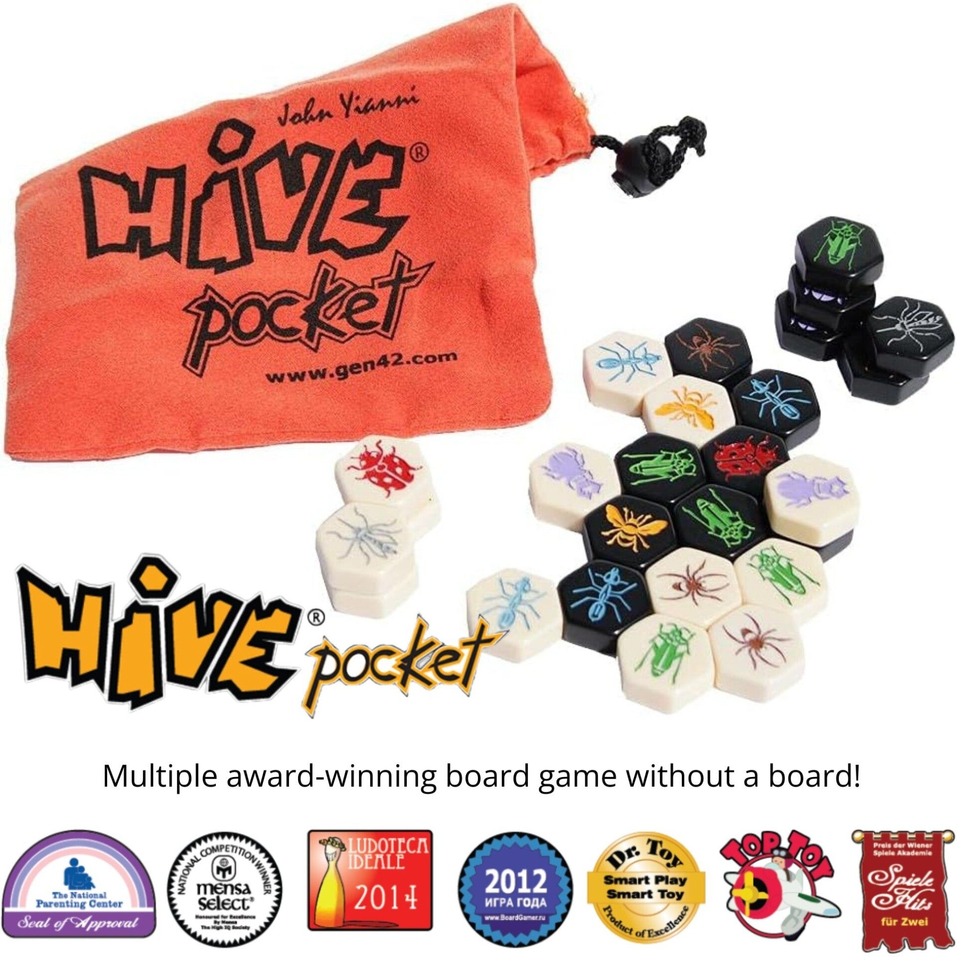 Hive Pocket is a compact, fast-paced abstract strategy game often compared to chess. Players take turns placing and moving insect tiles, each with unique movement abilities, to surround their opponent’s Queen Bee while protecting their own. With no board required and simple rules, it’s easy to start playing quickly — but mastering positioning, tactics, and foresight makes every match a deep and satisfying strategic duel.