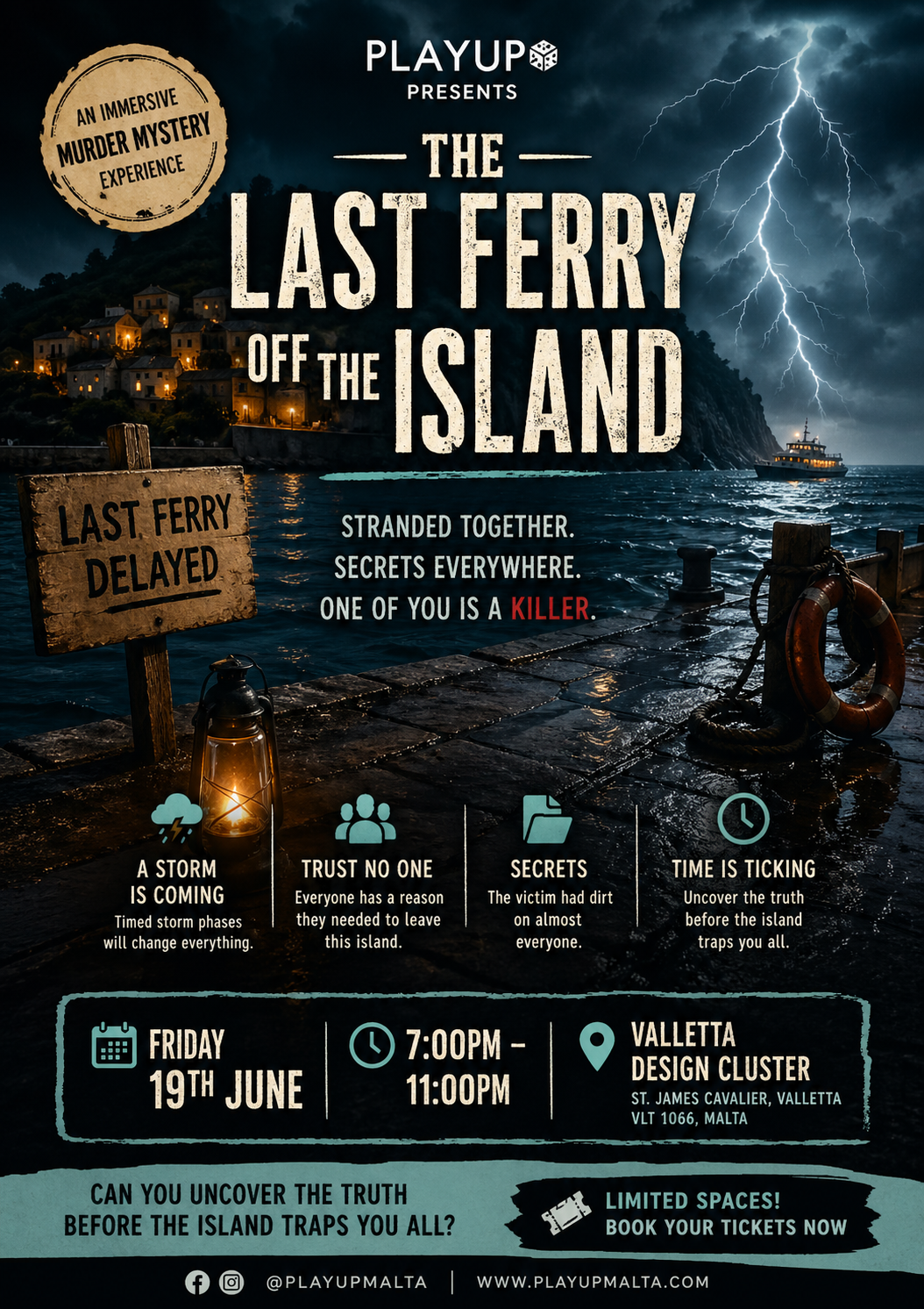 You and a group of strangers are stranded on a remote island, waiting for the final ferry that never arrives. As tension builds and secrets begin to surface, a body is discovered in the harbor.